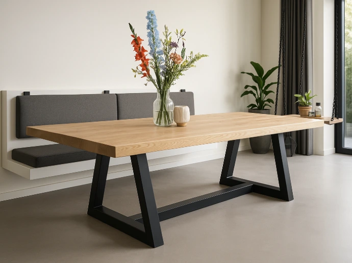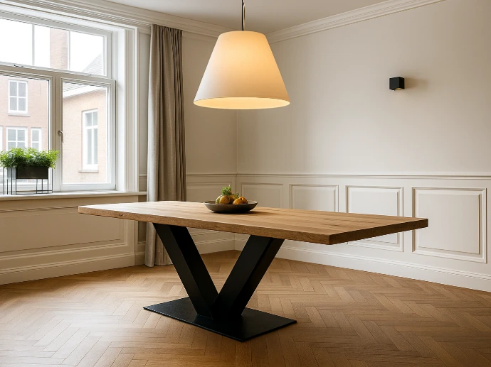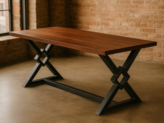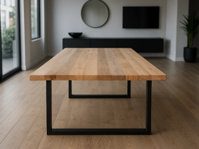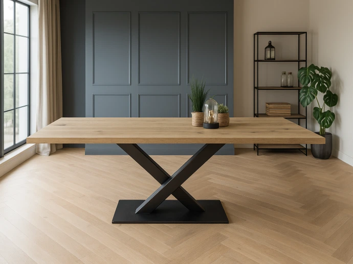Nuestras mesas combinan estructuras de acero de alta calidad con tableros de madera, creando piezas sólidas, equilibradas y duraderas. El acero aporta estabilidad estructural y la madera añade calidez y carácter.